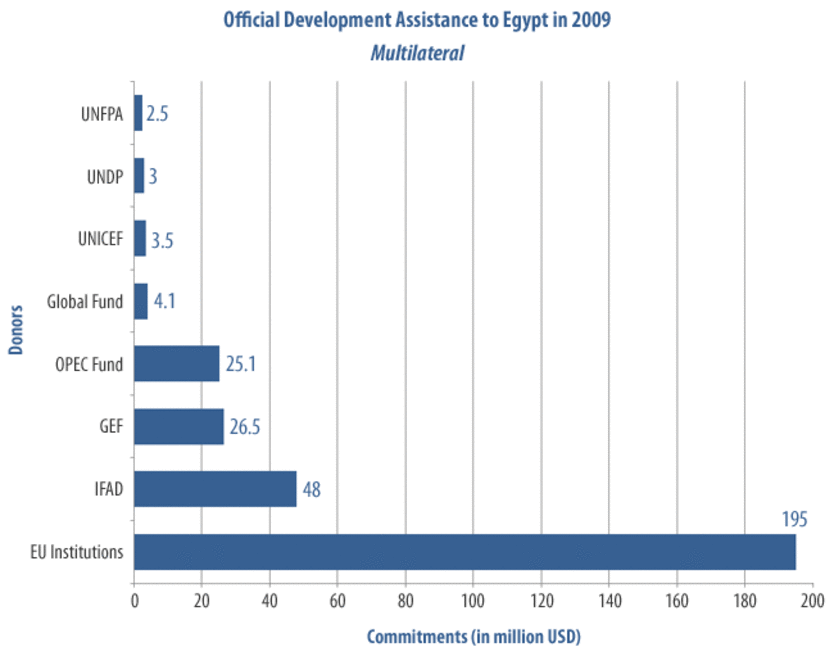 Here’s a look at development aid provided to Egypt by the few multilateral agencies tracked by OECD: