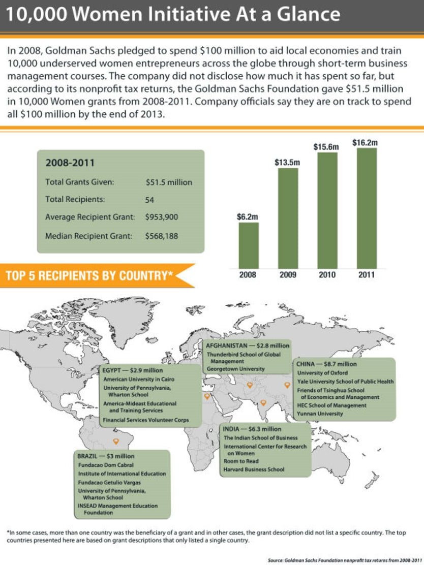 Goldman Sachs launched its 10,000 Women initiative with great fanfare in 2008, setting the ambitious goal of spending $100 million over five years to train women entrepreneurs in developing countries.