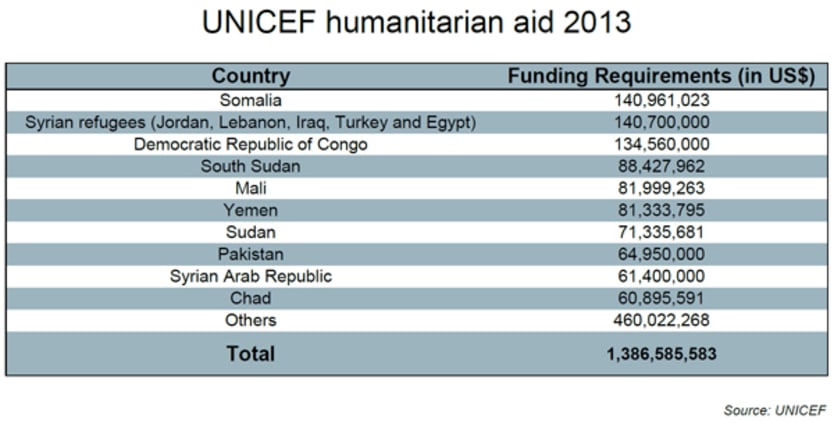 Here are the top 10 recipients of UNICEF’s 2013 humanitarian aid appeal: