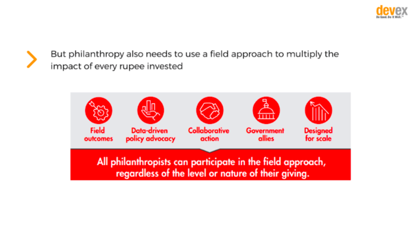 And the needs extend beyond financial resources, she said, referencing the field approach her organization takes, with a focus on collaborative action, outcomes, and design for scale.
