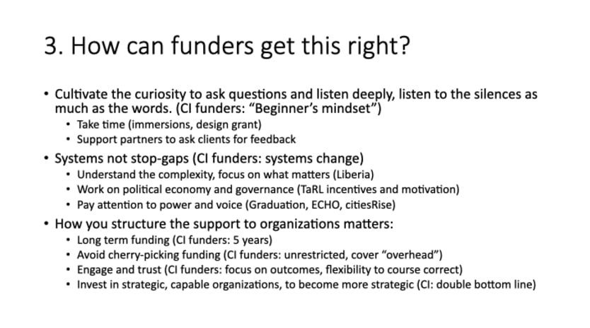 But there are ways that funders can get this right, for example by building effective feedback systems into their programs, Rajani said.