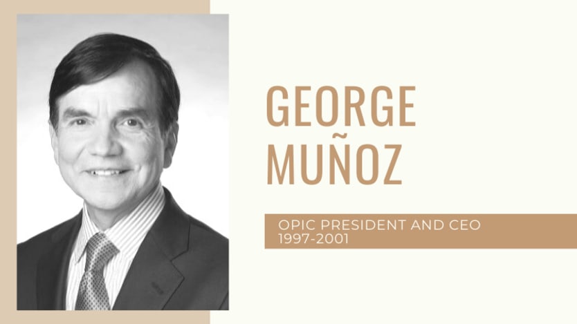 “OPIC was crucial when globalization started in the mid 1990s, the walls of protection that countries had put up in the emerging markets all started falling down at a rapid pace,” said George Muñoz, who served as OPIC CEO from 1997-2001.