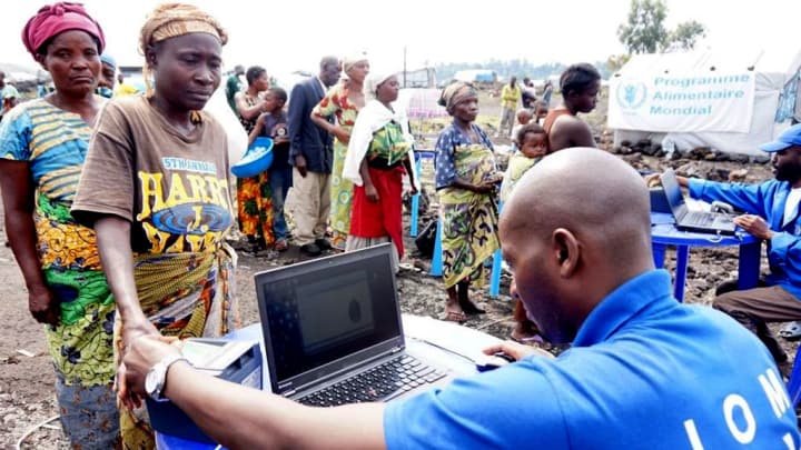 Biometric verification of beneficiaries in Nzulo displacement site in the Democratic Republic of Congo. Photo by: International Organization for Migration / CC BY-NC-ND