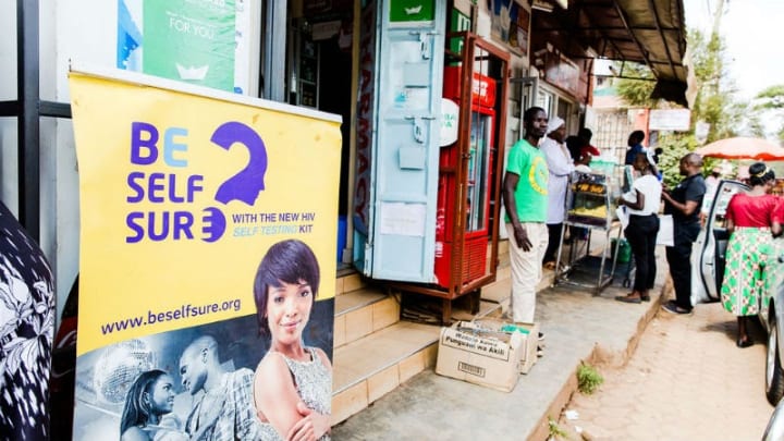 NAIROBI — On a recent afternoon, 19-year old Peter was approached by an NGO worker at the Kahawa West County Market on the outskirts of Nairobi who told him that around the corner he could grab a free take home HIV self-test. He walked over to a white tent to pick up his test and headed home to take it. Although sexually active in a country with one of the largest HIV epidemics in the world, this is the first time he has tested for the virus — even though he has been curious about his status for years.