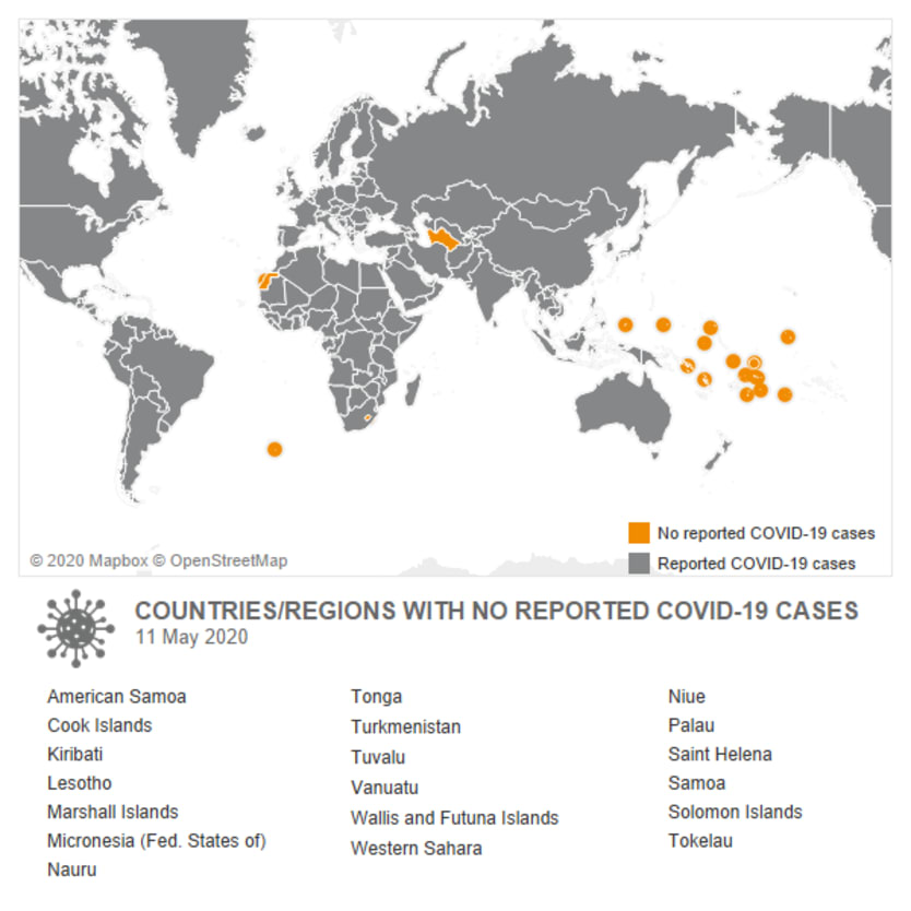 So far COVID-19 has been reported in over 180 countries and territories. But 19 other countries have not reported any confirmed cases, many of them in the Pacific.