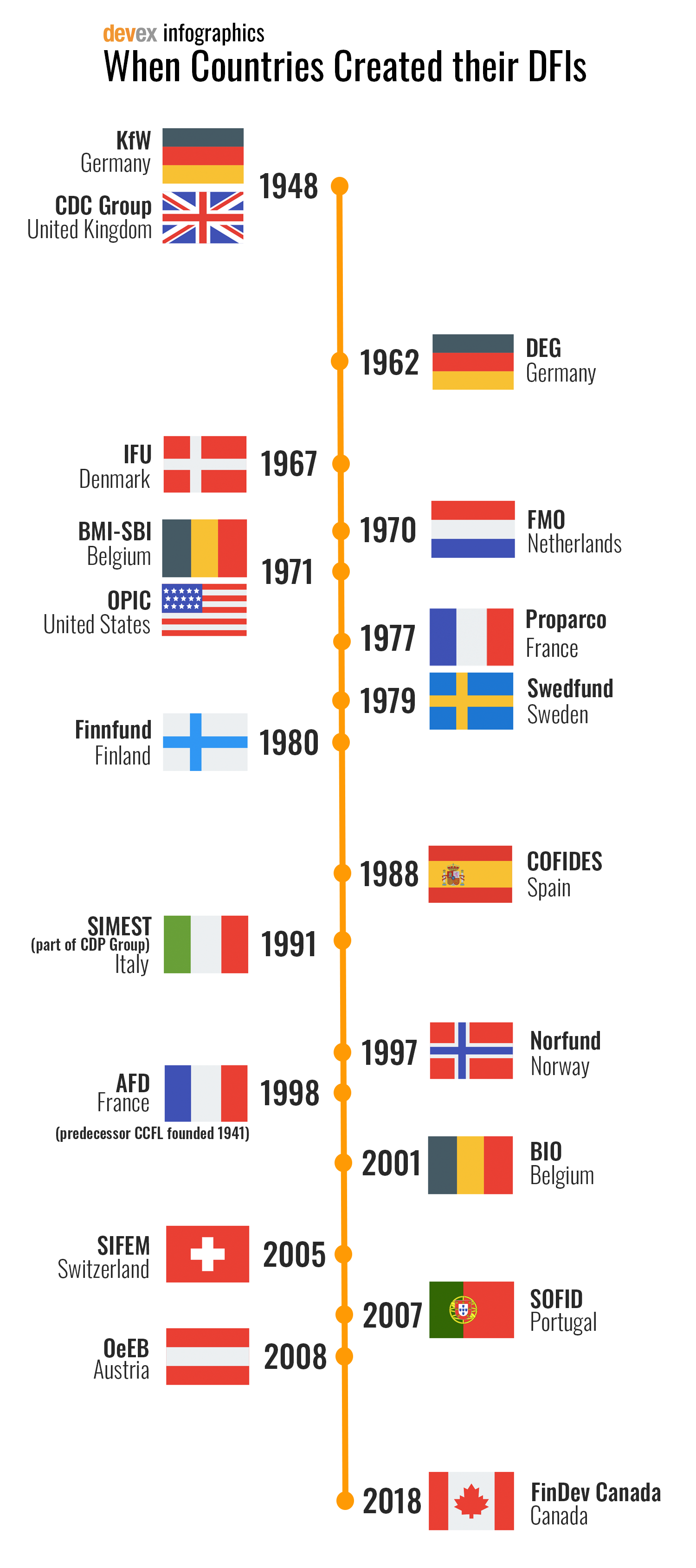 Update, April 16, 2019: The timeline graphic in this article has been updated to correct the date that Proparco was founded.