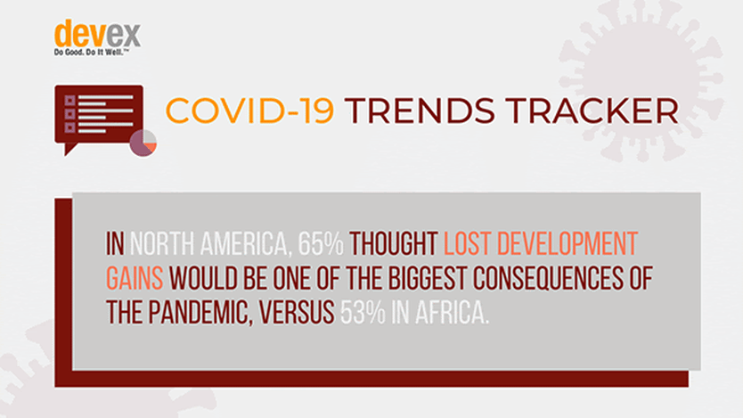 Devex’s weekly COVID-19 Trends Tracker questions hundreds of professionals around the world to understand how the pandemic is impacting the global development sector. Nearly all of those surveyed — 96% — said that the pandemic will have significant and long-term consequences for development.