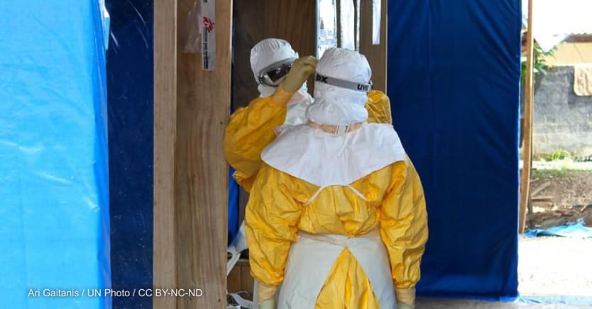 Health workers at an Ebola treatment facility in 2014 in Guéckédou, Guinea. Photo by: Ari Gaitanis / UN Photo / CC BY-NC-ND
