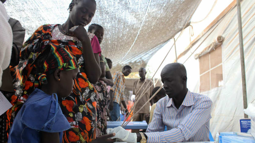 A girl is tested for malaria at a clinic in Tomping camp, Juba, South Sudan. Photo by: REUTERS / Andreea Campeanu