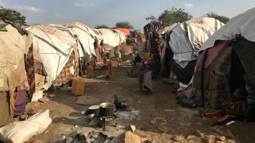 BAIDOA, Somalia — On the outskirts of the city of Baidoa, in southwestern Somalia, lies a tent city of small dome shelters that have been cobbled together with branches, plastic tarp, pieces of cloth, and old grain bags, held in place with a random assortment of string.