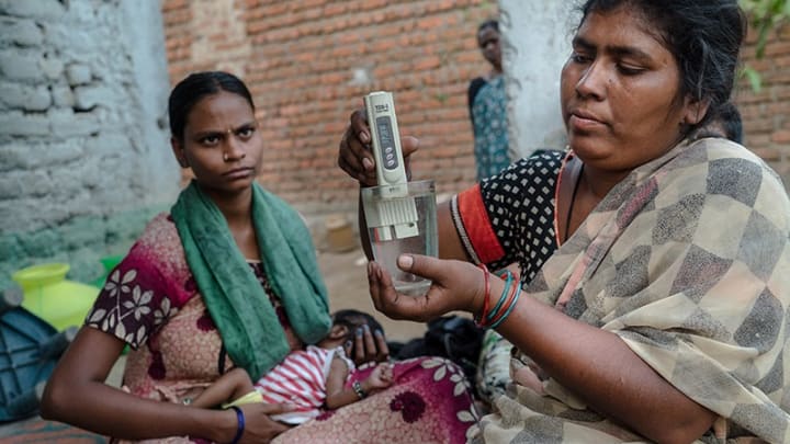 “We wanted to transform lives [of women] from being water carriers to water operators, entrepreneurs, and managers,” said Poonam Sewak, vice president of knowledge and partnerships at Safe Water Network India, adding that they provide information on bookkeeping, dispensing water, and conducting maintenance and repairs via the self-help groups.