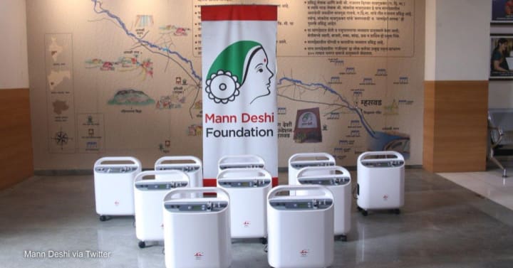 A batch of 10 oxygen concentrators arranged by Dasra for Mann Deshi Foundation to support rural Indian communities amid COVID-19. Photo by: Mann Deshi via Twitter