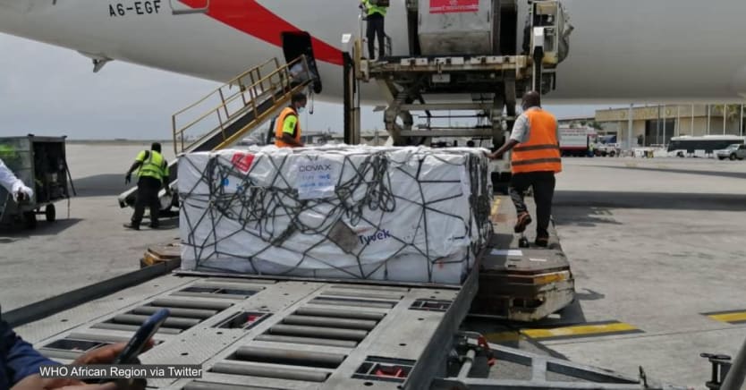 Doses of AstraZeneca COVID-19 vaccine arrived in Abidjan, Côte d'Ivoire via the COVAX Facility. Photo by: WHO African Region via Twitter