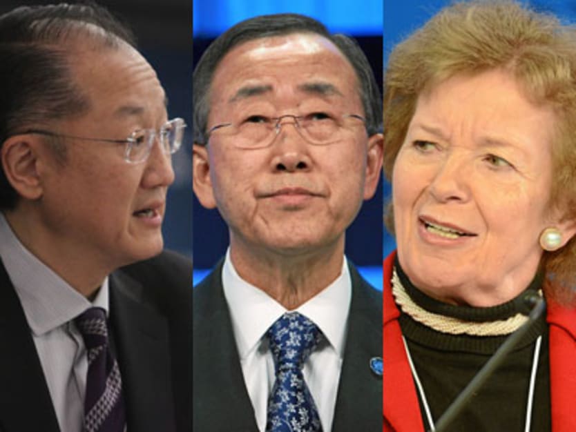 World Bank President Jim Yong Kim, United Nations Secretary-General Ban Ki-moon, and Former President of Ireland Mary Robinson. Photos by CSIS / CC BY-NC-SA and World Economic Forum / CC BY-NC-SA