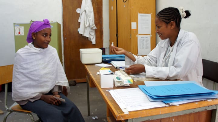 Mamitu Dechase, a midewife and a family planning expert, proposes options to a patient in Bussa Health Center, Oromia Region, Ethiopia. Photo by: Audrée Montpetit / USAID Ethiopia / CC BY-NC-SA