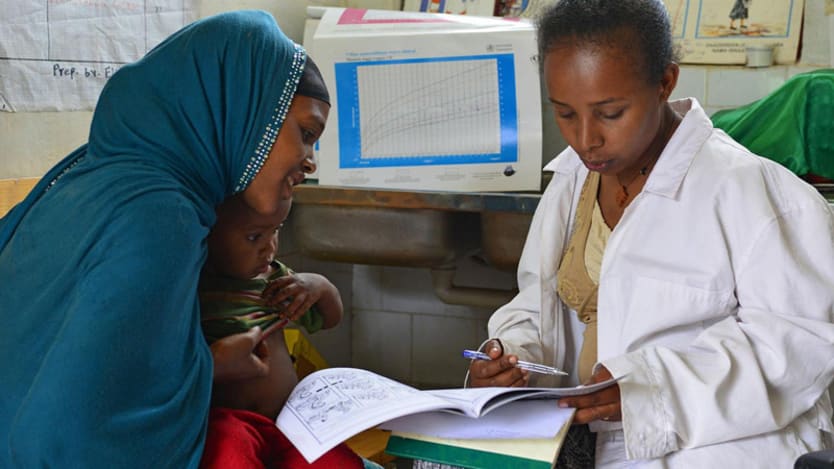 A health extension worker counselling a mother on best nutrition practices. Photo by: Nesbitt /  UNICEF Ethiopia / CC BY-NC-ND