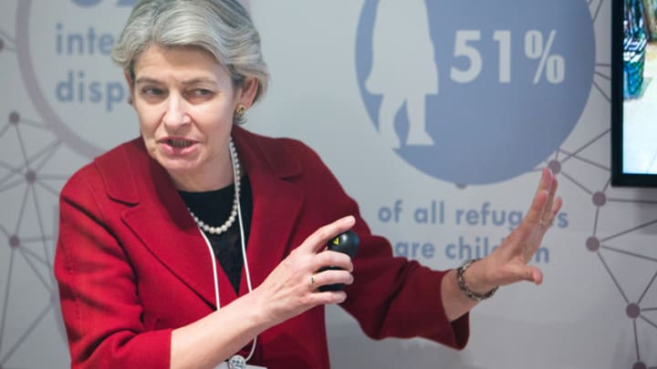 In Syria, Iraq and elsewhere, UNESCO is co-leading efforts to tackle antiquities trafficking by extremist groups. They have sent cultural missions to battle-torn Aleppo and Mosul to assess the damage to heritage sites. And across the globe, UNESCO is leading a debate about how to reach the millions of displaced children worldwide with a quality education.