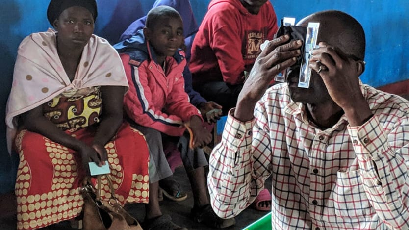 We're selling kits to organizations that can build on this capability. Organizations that are already in the developing world — whether they're training community health workers or running small clinics for malaria medication distribution — can get one of these kits and ... provide [glasses] for less than $5 a patient.