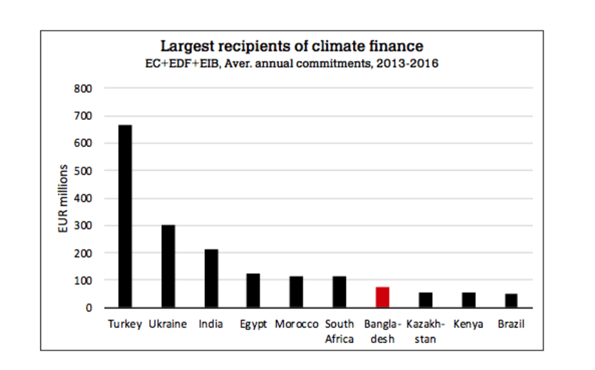 Update, April 19, 2018: This story has been updated to clarify that non-EU countries in Europe and Turkey received 33 percent of climate finance from the European Union institutions between 2013 and 2016.