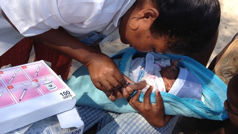 A health worker gives a newborn a dose of bacille Calmette-Guérin (BCG) in Madagascar. Photo by: CDC / CC BY