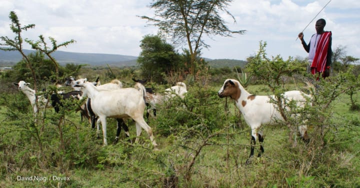 Moses Karbolo herding his family’s goats at their farm in southern Kenya. Photo by: David Njagi / Devex