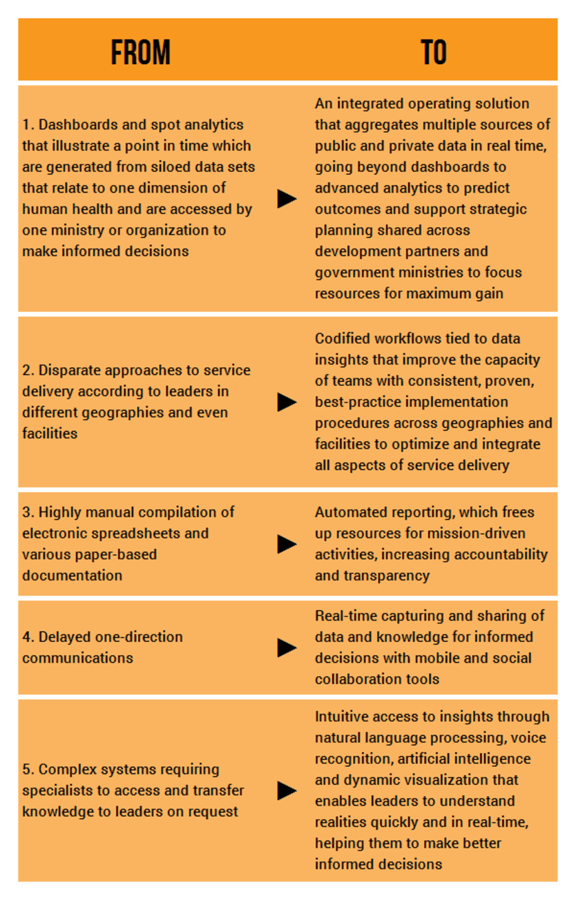 Imagine the potential for inclusive health and growth when government, nongovernmental organizations, donor organizations and corporations operating in the developing world leverage technology, to move: