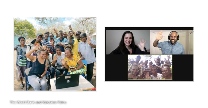 Using Zoom, Folktale team members are waving their hands and supporting the farmers in developing their storytelling skills. Photo by: The World Bank and Kalolaine Fainu