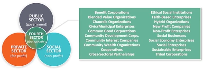 The Fourth Sector Development Initiative, or FSDI, is intended to strengthen the supportive ecosystem for enterprises that both see advancing societal benefit as their primary purpose — in the same way that nonprofit organizations do — but also generate most of their income from business activities, in the same way that for-profit companies do. These “for-benefit enterprises” go beyond the traditional three sectors of private, public, and nonprofit organizations and belong in their own category, said Heerad Sabeti, CEO of the Fourth Sector Group.