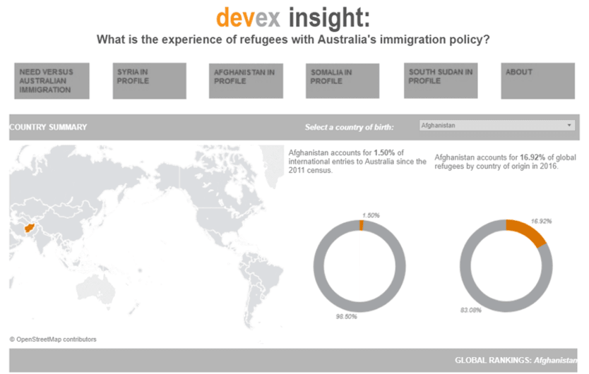 Devex has developed an interactive feature highlighting refugee need versus intake to Australia. And it is an important way to understand the experience of refugees within a developed country.