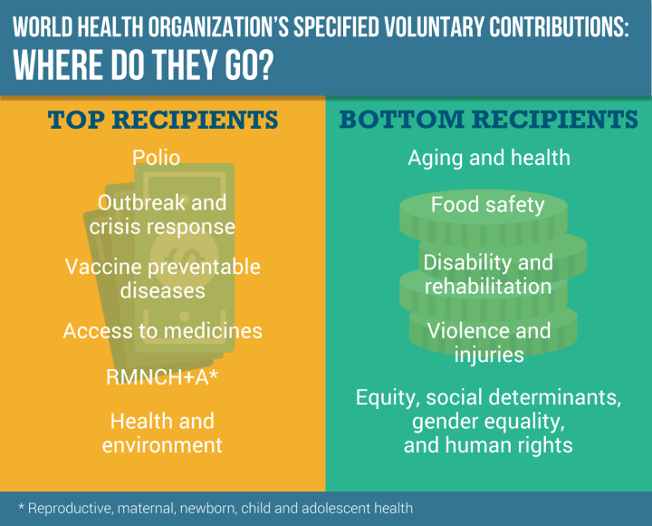 Currently, earmarked voluntary contributions cover 75 percent of WHO’s budget, leaving financing disparities between programs and little wiggle room for the institution to distribute funding as needed.