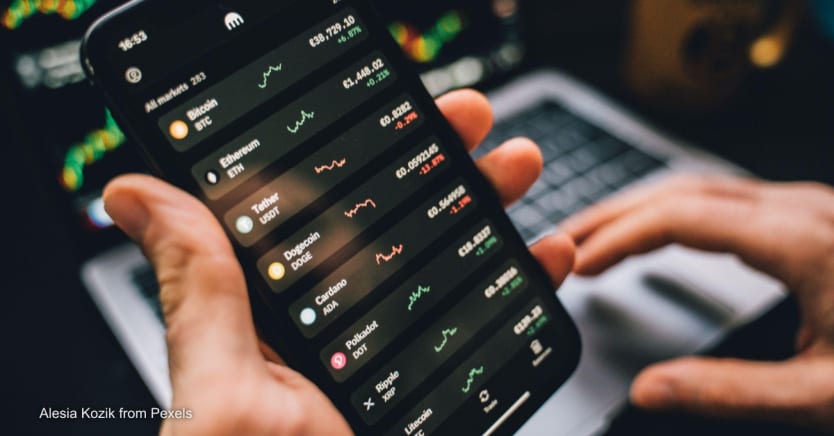 A person monitoring the value of cryptocurrency on their mobile phone. Photo by: Alesia Kozik from Pexels